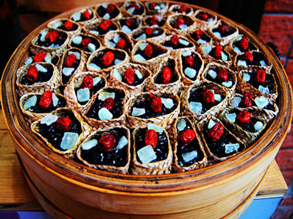 畬族烏飯得名副其實,吃起來連碗筷也被染粘成烏黑色。不過它的味道相當不錯,吃一口清香糯柔,細膩愜意,別有情趣。倘若將烏飯貯藏在陰涼通風處,則數日不餿。食用時,以豬油熱炒,更是香軟可口,堪稱畬鄉上等美食。