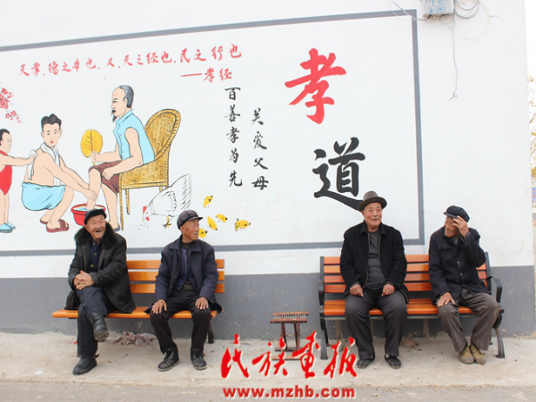 王古宅村堅持以項目建設(shè)為載體,傾力打造“少數(shù)民族特色村寨”,共建生態(tài)和諧民族村。我們看到在街道兩旁,隨處可見回族與漢族坐在一起聊天,男女老少在家門前嘮嗑,鄰里之間其樂融融。這讓我想起陶淵明寫的《世外桃源》中的幾句詞,“土地平曠,屋舍儼然”“黃發(fā)垂髫,并怡然自樂”,以此來形容王古宅村的村貌再合適不過。