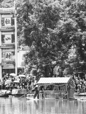 廣西桂林恭城瑤族自治縣“五一”期間在平安鄉社山村、蓮花鎮紅巖村等旅游景點,舉行了瑤家小鍋米酒坊、原生態腐竹制作體驗、瑤族水上婚嫁表演等活動,豐富了群眾的文化生活。圖為獨特的瑤族水上婚嫁表演,吸引了許多游客駐足觀賞。