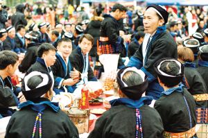每逢重要節日,白褲瑤群眾都有舉辦長席宴的習俗。以前,芭蕉葉當作盤子,芭芒干折成筷子,一個飯團、一塊牛肉,再加一碗酒,就是長席宴的全部。現在改變了很多,但不變的是白褲瑤自然、和諧、平等的美德。2019年2月拍攝。