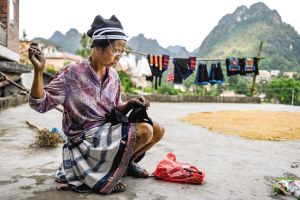 白褲瑤婦女紡紗織布做衣,新買的棉紗要經過蒸煮、漂洗、涼曬才可織布,而年輕一代的白褲瑤婦女大多直接到市場上買白布。2007年10月拍攝。